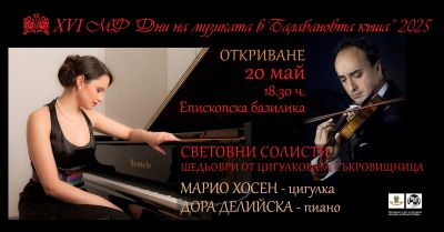 Откриването е на 20 май в Епископската базилика с концерт на световноизвестния цигулар с пловдивски корени Марио Хосен, наричан от възхитената публика “българският Паганини”, който ще музицира заедно с виртуозната пианистка от Виена Дора Делийска.
