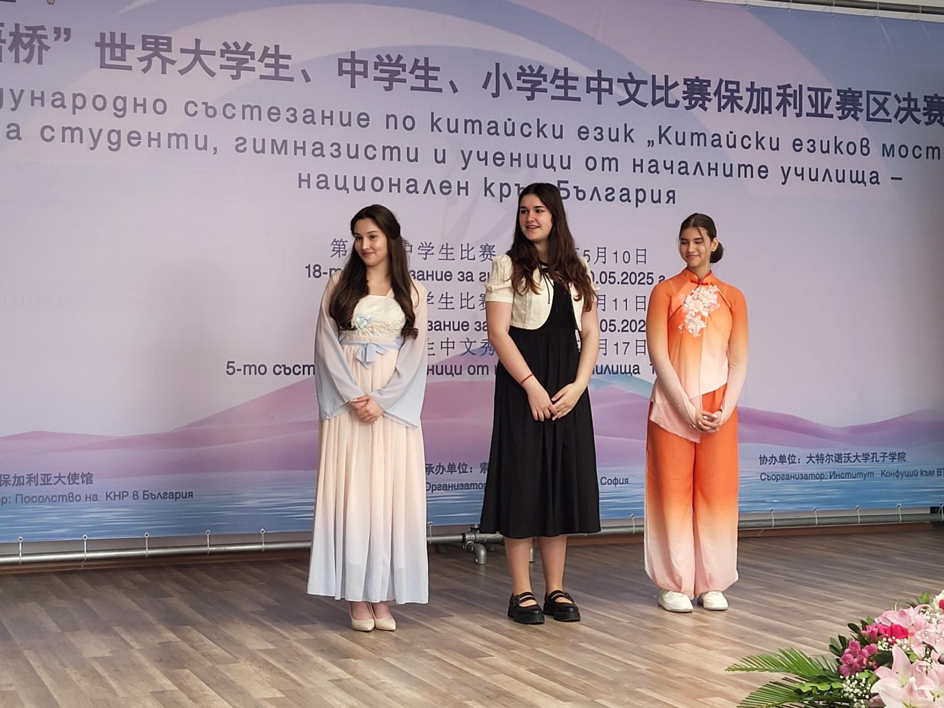 Състезанието се проведе в три кръга – писмен тест, реч и отговори на въпроси, както и талант, като всички участници демонстрираха високо ниво на владеене на езика и познаване на китайската култура. Събитието премина в присъствието на представители на Посолството на КНР в България, сред които г-н Ян Тиен – началник на отдела по образование, както и директори от Институт Конфуций в София и Великотърновския университет. Сред официалните гости бе и директорът на СУ „Васил Левски“ – Русе, г-жа Мария Тодорова, която подкрепи своите възпитанички по време на напрегнатата надпревара.